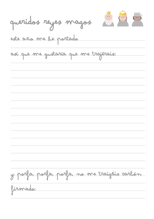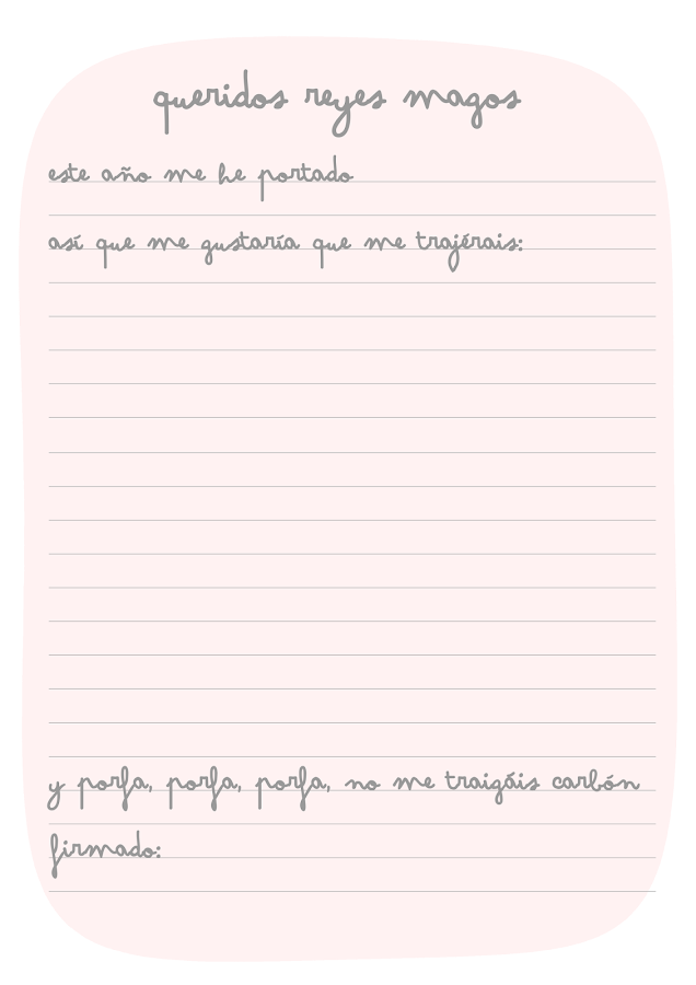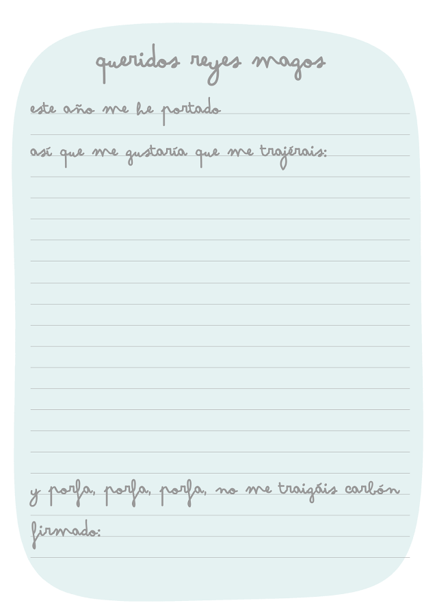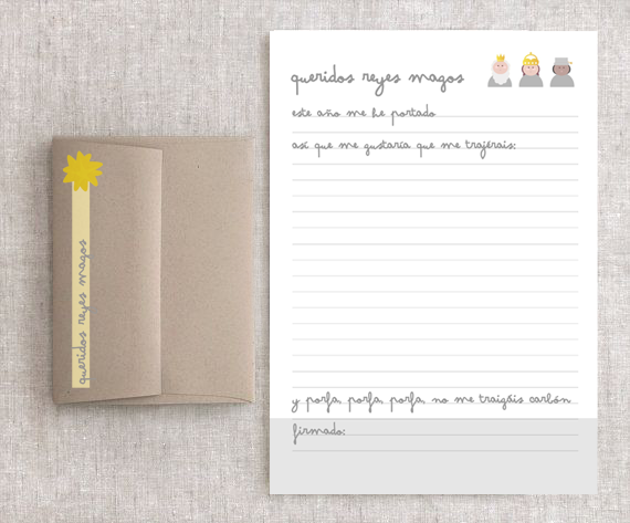 A pesar de que hoy es fiesta y que muchos asocian el día de hoy a Papa Noel, os traigo un post con 4 tipos de imprimibles diferentes para que los niños de la casa tengan la carta de reyes más bonita del mundo y puedan hacer un listado de lo que desean para esa noche tan especial. Hay dos modelos más infantiles para los más pequeñines y otros dos diseños más abstractos para aquellos que ya están algo más creciditos. ¿Te animas a descargártelas?