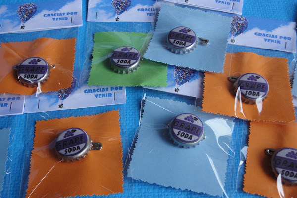 Aqui, a un lado del Candy Bar puse las insignias de Grape Soda, la insignia que Ellie le regala a Fredriksen cuando son pequeños, y que Fredricksen le regala a Russel al final de la peli. La verdad es que me llevó muchisimo tiempo hacerlas pero a Rodri le encantaron.