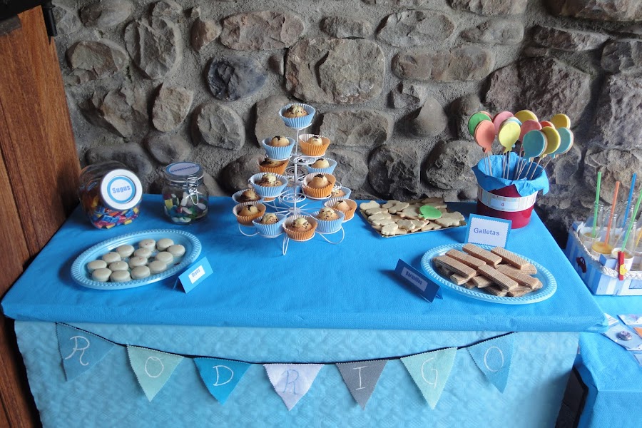 Este dué el Candy Bar que preparé, decidimos hacer el cumpleaños en el dia previsto a pesar de que el tiempo no acompañaba mucho, asi que se me quedaron muchas cosas sin hacer, pero bueno, creo que para ser el primero que hago, no está nada mal.