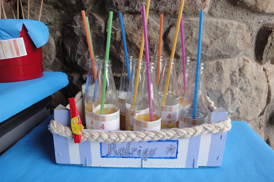 También les puse unos zumos con pajitas de colores, en botellines de cristal decorados.