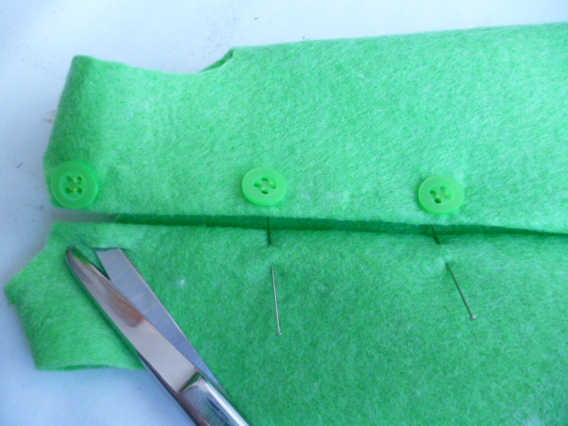 Con la punta de la tijera hacemos unas rajitas en el lado opuesto al de los botones , fijaros que yo utilizo tijeras de punta redondeada,