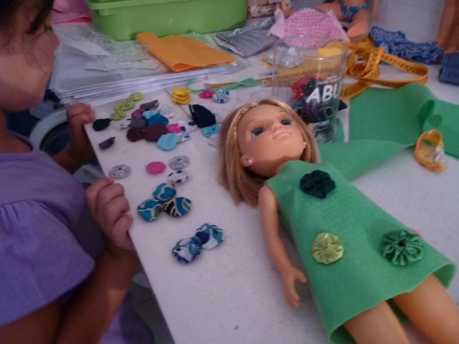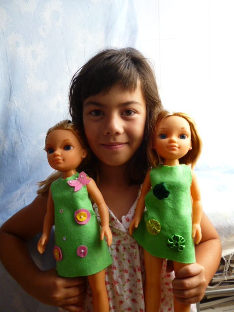 Voy a intercalar fotos del vestido que yo hice , con el que hizo mi sobrina PAULA , de siete años ,