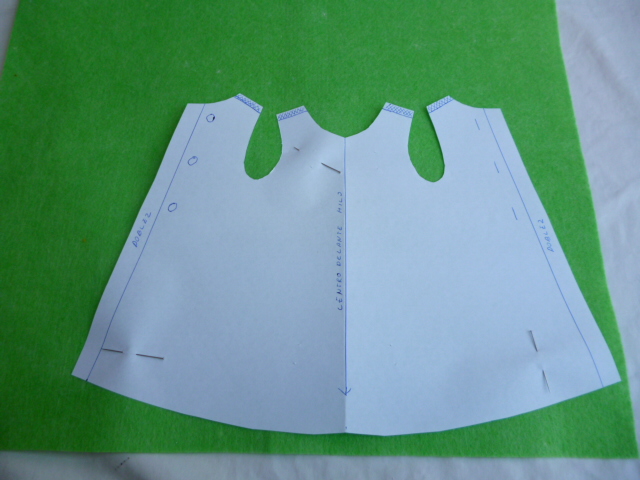 Ponemos el patrón sobre la tela , sujetamos con alfileres y cortamos al ras ,