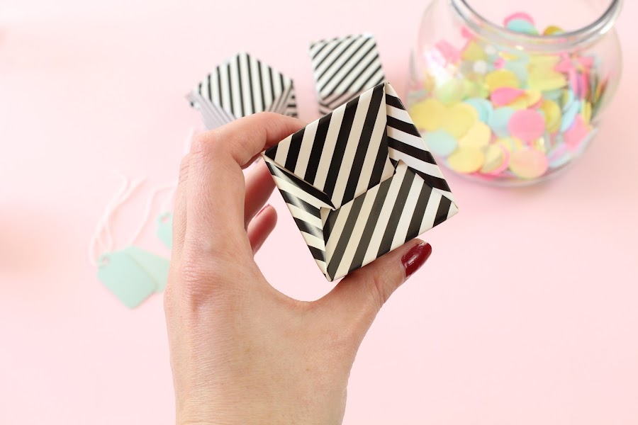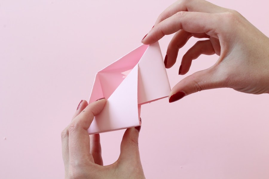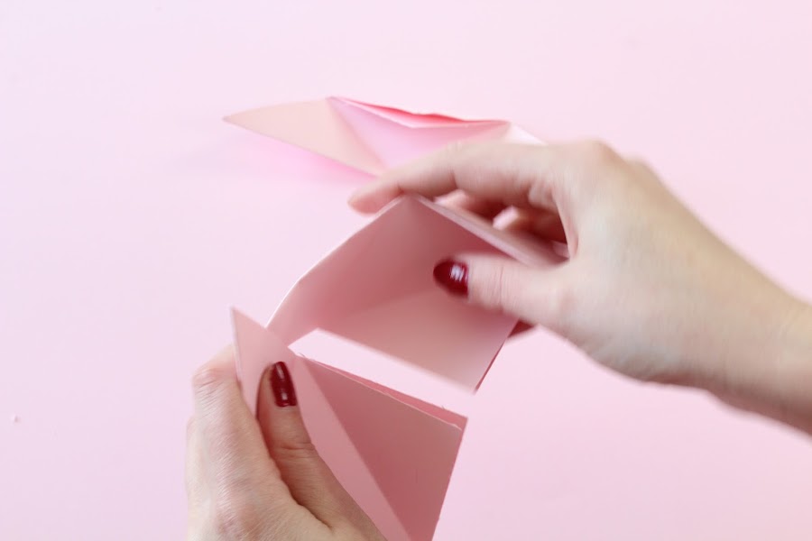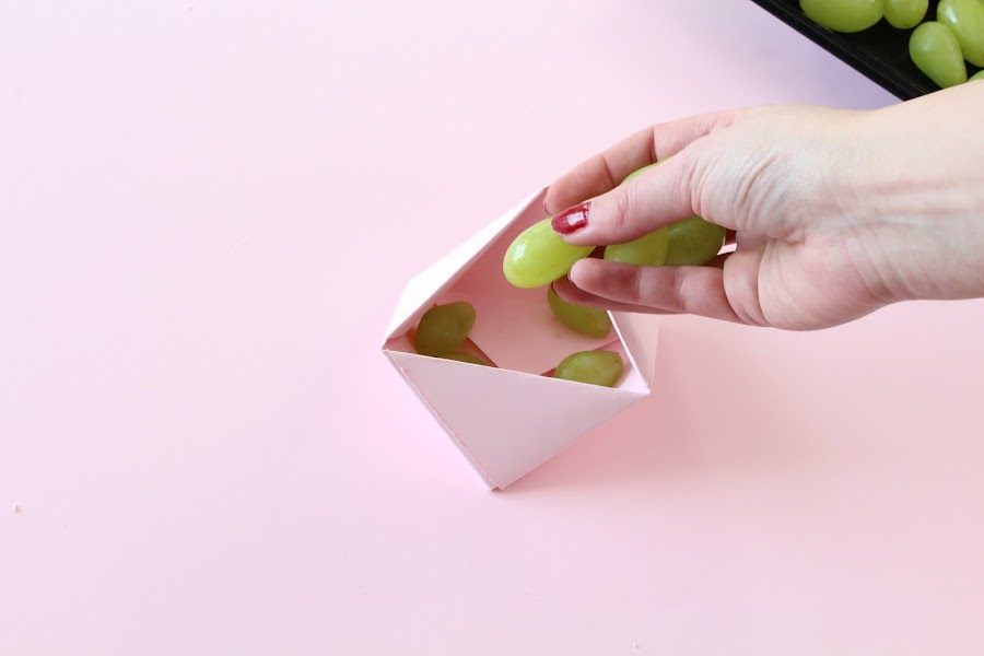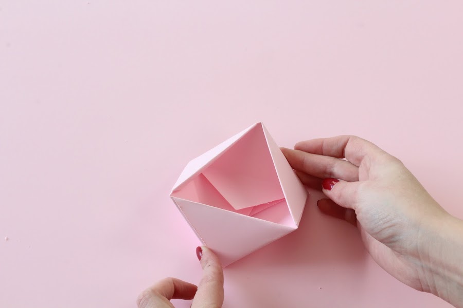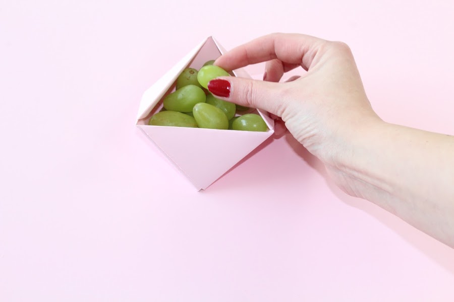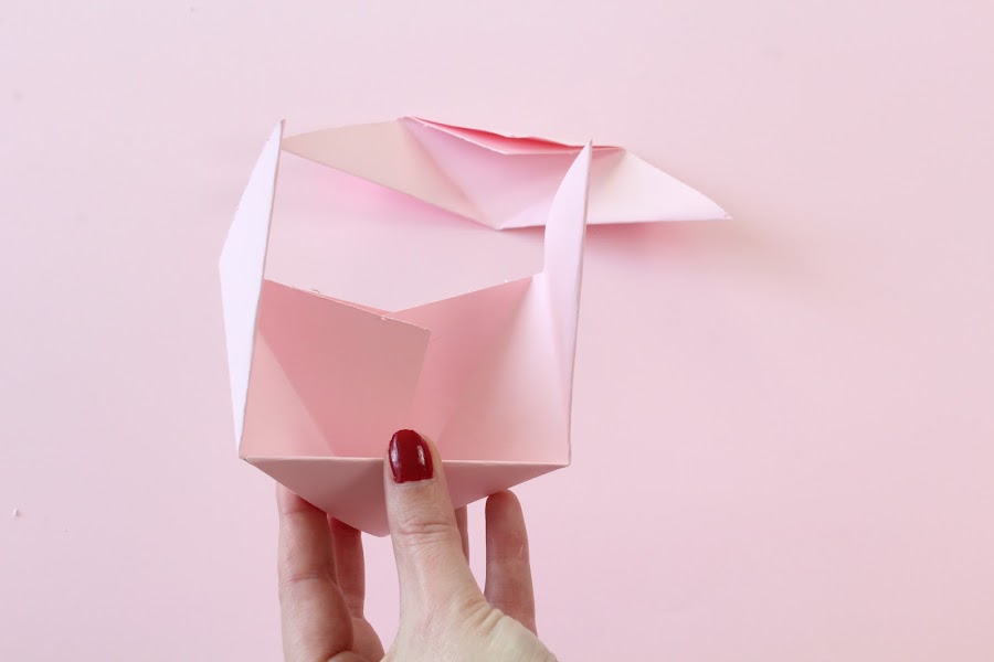Para montar el recipiente hay que ir introduciendo las esquinas una dentro de otra, así hasta crear en recipiente. Os dejo la infografia del paso a paso: