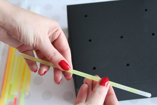 2 Paso: Colocamos los palitos iluminados en los agujeros de la base.