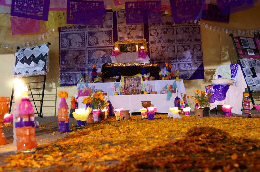 ¿En qué consiste? El Altar de Muertos es un elemento de gran simbolismo instalado en muchos hogares mexicanos en esta fiesta. Puede estar compuesto de diferentes niveles, y en cada uno de ellos se va colocando cuidadosamente todo tipo de elementos: fotografías del fallecido, imágenes de algún santo o religiosos, objetos personajes del fallecido, calaveras de azúcar, un licor, símbolos que representen al difunto, ofrendas florales, alimentos... En este vídeo podéis ver un ejemplo: