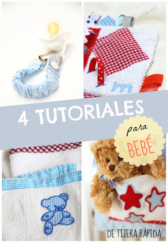 ¡Por fin vacaciones! Y este año parece que va a hacer buen tiempo en semana santa, ¿qué más se puede pedir? Ya imagino que estaréis con ganas de descansar, pero yo he pensado en tentaros un poquito. ¿De verdad que vais a estar 4 días sin coser nada de nada? Para convenceros he preparado un post resumen con 4 de mis tutoriales, todos pensados para bebés. Son proyectos sencillos que no os van a llevar mucho tiempo. ¿Os apetece la idea?