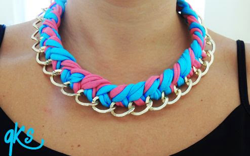 4.-Collar de trapillo con cadena. Este modelo también es muy fácil tendrás que realizar una trenza que posteriormente unirás a la cadena. Precioso, ¿verdad?