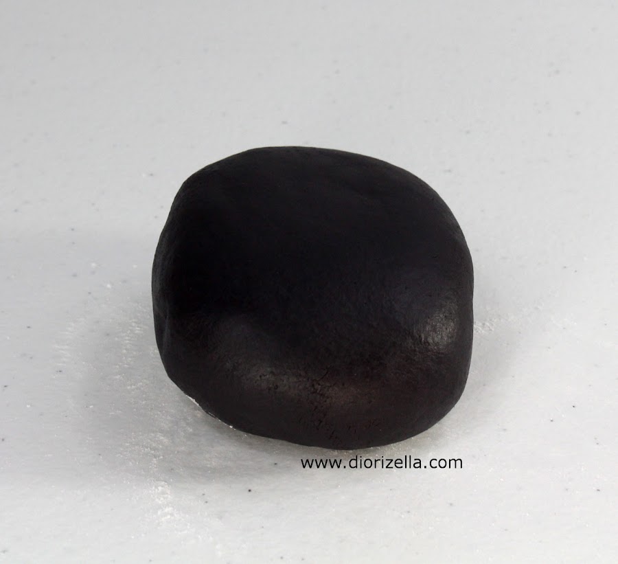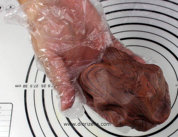 4. Pinta el fondant marrón color negro - Ahora pinta el fondant color marrón con el colorante negro. Agrega 3 a 4 gotas y amasa para que el color se incorpore bien. Agrega nuevamente más colorantes algunas 3 a 4 veces o las que sean necesarias. También deja el fondant reposar por 24 horas.