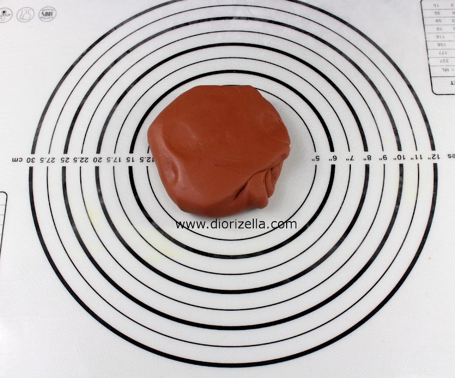 3. Pinta el fondant color marrón- Primero debes pintar el fondant color marrón oscuro. Luego deja el fondant reposar por 24 horas para que se acentúe mejor el color. Luego se parte de esta base marrón y debe requerir menos colorante negro que si se parte de una base blanca.