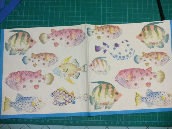 8. Para decorar la furgoneta usaremos una servilleta. Haremos decopauge sobre goma Eva.