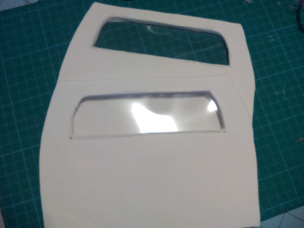 2. Forramos las piezas anteriores con goma Eva, en mi caso color blanco.