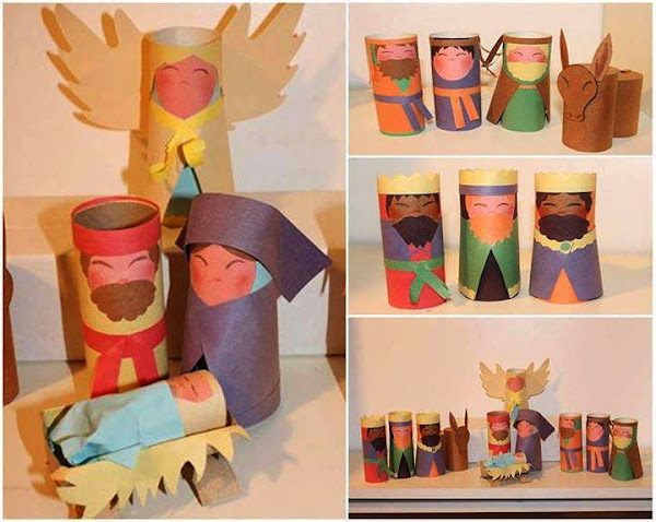 4. Como penúltima opción, te traemos este pesebre de cartón hecho a base de canutos de papel higiénico al que no le falta ningún detalle. Con acuarelas y unas tijeras conseguirás un gran resultado.