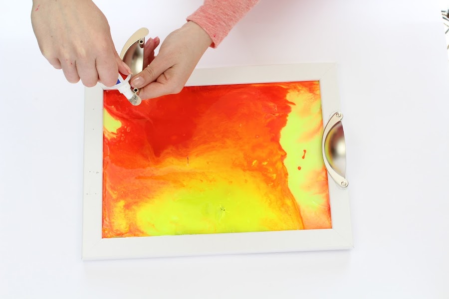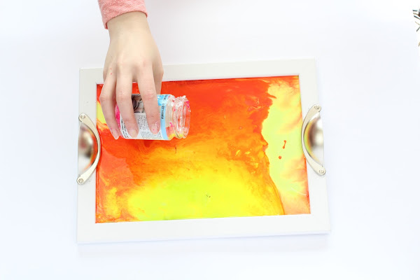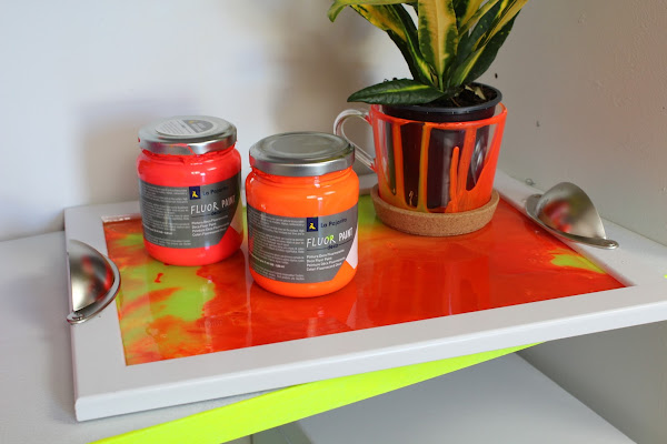 DIY bandeja con un diseño flúor, perfecta para ser el centro de cualquier mesa de centro. Reutiliza tus viejos marcos.