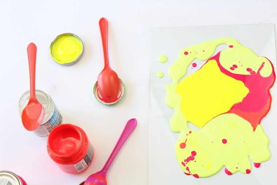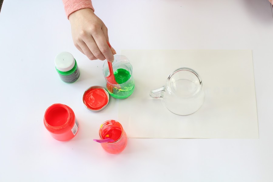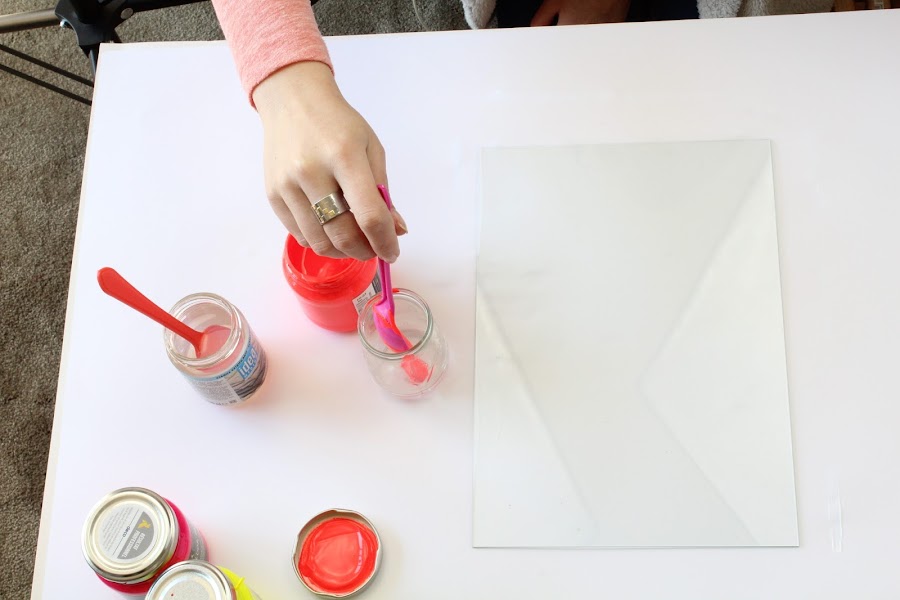 5 Paso: Mezclamos el Medium Textil con la pintura flúor a partes iguales.