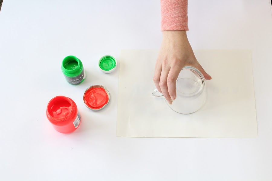 2 Paso: Iremos vertiendo la pintura en el cristal color a color.