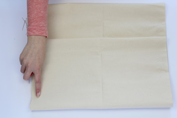 1 Paso: Doblamos la tela a la medida que queremos el cojín y lo fijamos con alfileres.