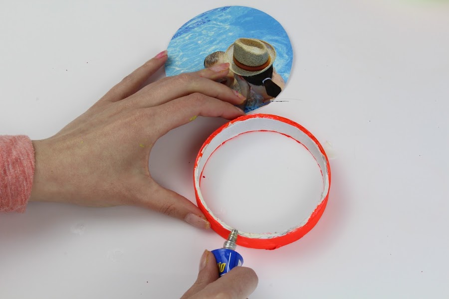 5 Paso: Pegamos con adhesivo la fotografía al perfil del circulo