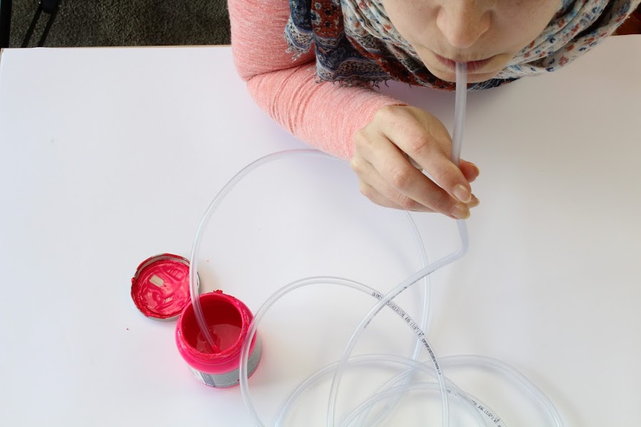1 Paso: Pintamos la manguera por dentro, la forma más fácil es metiendo un extremo en el bote y succionar con la boca, para correr riesgo de tragar pintura marcar una señal como punto final. Dejar secar.