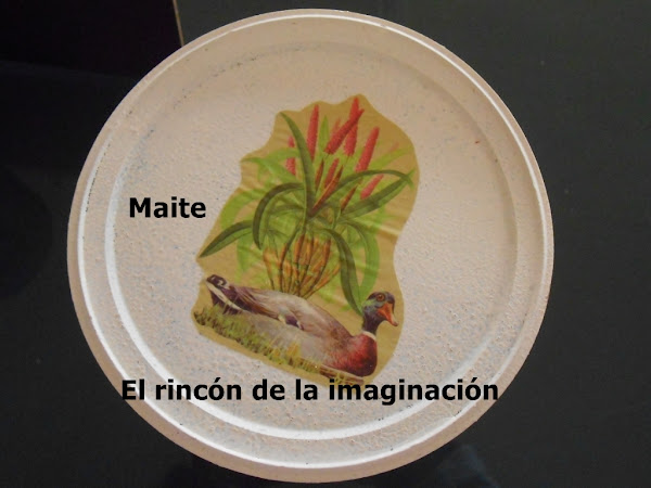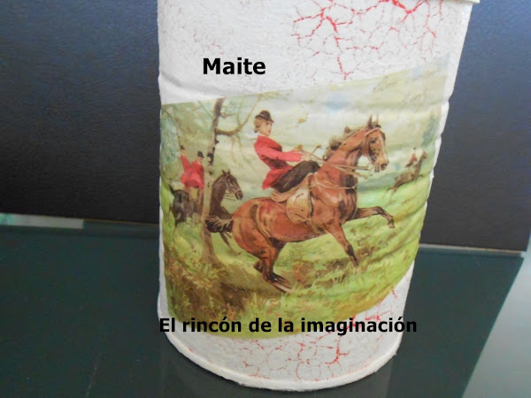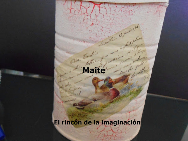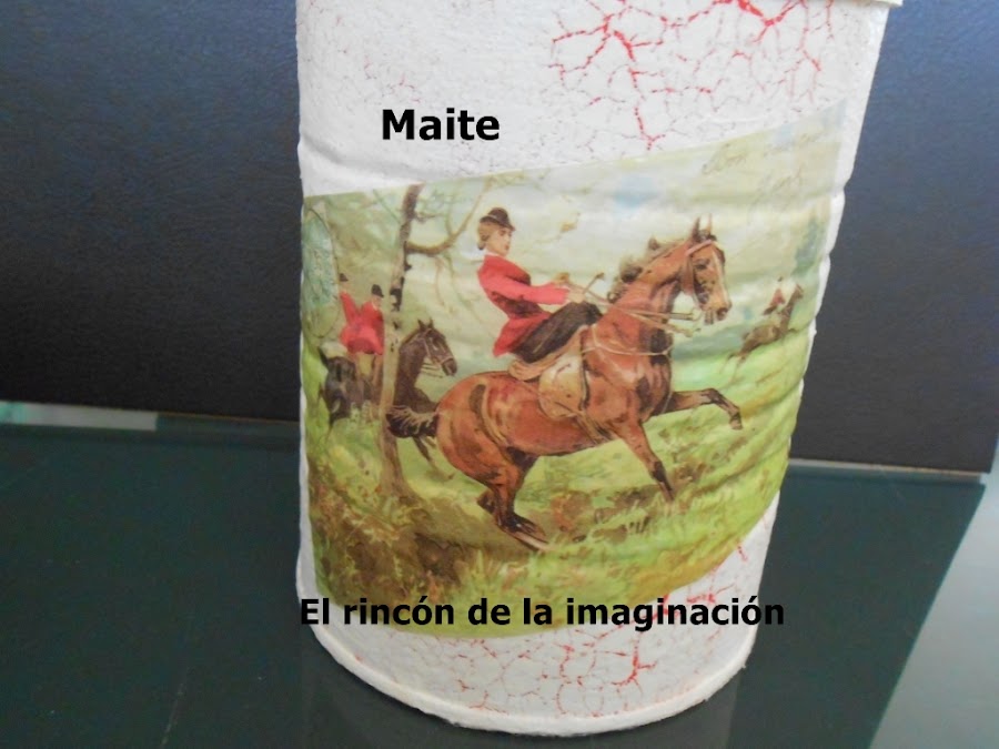 Después le puse unas imágenes de papel de decoupage y la barnicé.