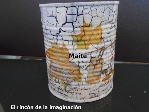 Y este es otro con un craquelado más grande y con la base negro y decorado con una servilleta.