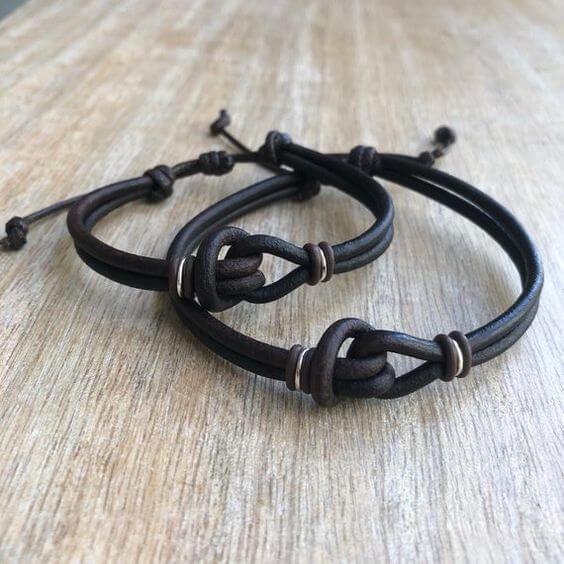 Las pulseras de cuero con nudos son las más clásicas, intemporales y utilizadas desde siempre, no necesitan accesorios adicionales para destacar, sino que por sí mismas, tienen un estilo único y un sitio dentro de nuestros abalorios diarios, además, no solamente son para hombres, sino que como sabemos, son del agrado de todos los públicos, lo que las hace una apuesta segura a la hora de regalar. Otra opción es personalizar la pulsera de cuero con nudos, decorando con abalorios de zamak. su acabado con un clásico nudo corredizo y listo.