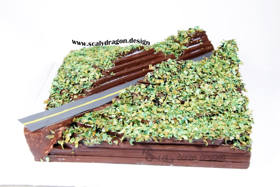 El aserrín es bastante utilizado para la elaboración de maquetas como esta aunque para llegar a este resultado se debe de representar tridimensionalmente un diseño en una maqueta, es necesario partir de un boceto o dibujo técnico con medidas. en mi caso es una carretera atravesando unas montañas.