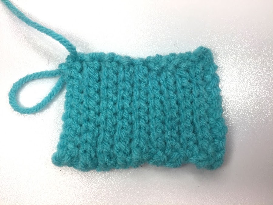 Notarás que el tejido no crece tan rápido en comparación con los otros elásticos y es porque el punto deslizado o punto raso es muy plano y esto hace que el tejido tarde un poco más en alcanzar el largo que buscamos.