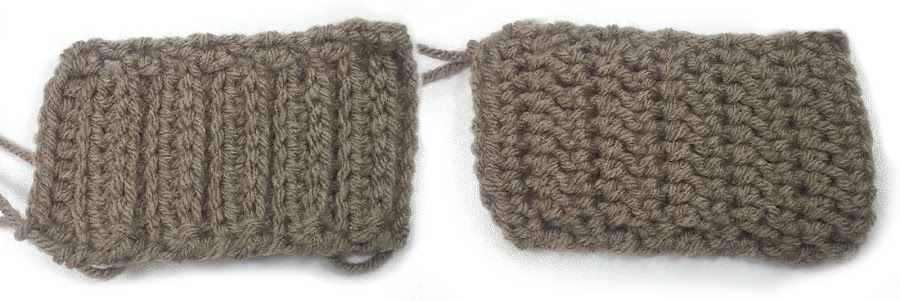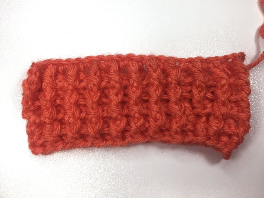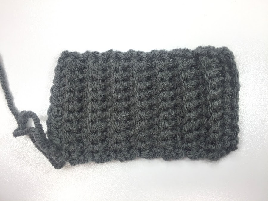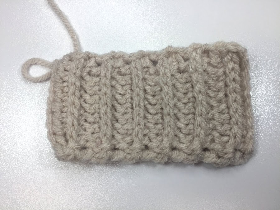 La primera fila se tejerá con puntos altos normales y a partir de la segunda fila se iniciará la siguiente secuencia: 1 punto alto en relieve por delante, 1 punto alto en relieve por detrás, repetir hasta finalizar.