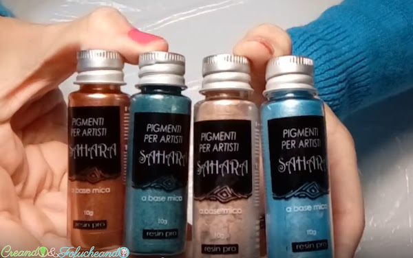 Junto a la Resina, usaremos pigmentos Sáhara, de Mica, yo he elegido 4 bonitos colores.