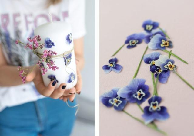 Para llevar las flores siempre a tu lado puedes utilizarlas para crear una funda de móvil tan original como esta. Para ello necesitarás un poco de resina líquida, si la consigues, lo demás es super fácil. ¿Cuáles son tus flores favoritas? Yo pondría…. jaras que son flores Madrid muy típicas.Velas decoradas con flores naturales