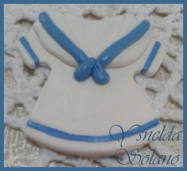 La Cuarta Idea, una linda y pequeña camisa, con detalles de estilo marinero, como la solapa y el pañuelo. También de forma plana, al igual que las anteriores piezas, apliques que sirven para la decoración de infinidades de objetos y detalles. O tambien puede ser usadas solas, por ejemplo, con un imán servirán para decorar cualquier superficie metálica como por ejemplo una nevera o marco de puerta de metal.