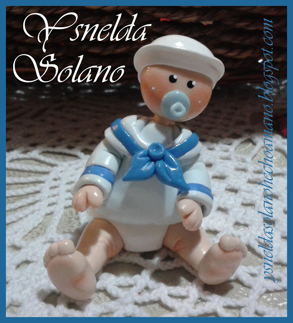 La Primera Idea un bebe con su chupón o chupete, en pañales y descalzo, pero con su camisa y su gorro de marinero, ideal para decorar una tarta o torta para cumpleaños. O tambien para realizar un centro de mesa, decorar la base de una lampara infantil, entre otras.