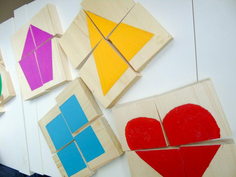 Con tacos de madera puedes crear un juego educativo para aprender las figuras geométricas. Este proyecto es de In the playroom Si quieres más proyectos aquí encontrarás muchas ideas para crear puzzles