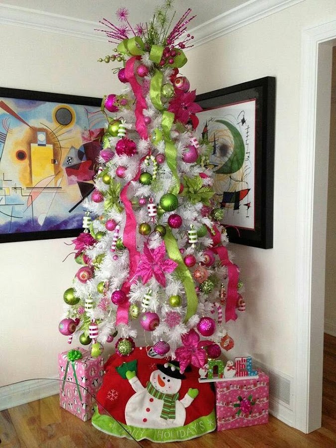 El otro día en facebook una chica me pidió que subiera ideas para decorar un árbol navideño de color blanco, recuerdo que hace unos años era toda una novedad el tener un árbol navideño blanco, y es que parece ser que el verde tradicional se está cambiando por árboles de colores espectaculares, los hay en morado, negro, azul, rosa y por supuesto los árboles blancos.