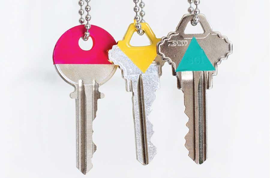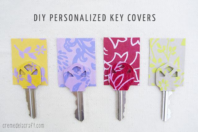 Otra idea de Creme de la Craft para personalizar las llaves es utilizando papeles de colores. Una especie de decoupage. Busca papeles estampados con tus motivos favoritos y pégalos con cola en las llaves para identificarlas rápidamente. Tendrás que recortar el papel con la forma de la llave y listo. Seguro que quedan muy bonitas y originales.