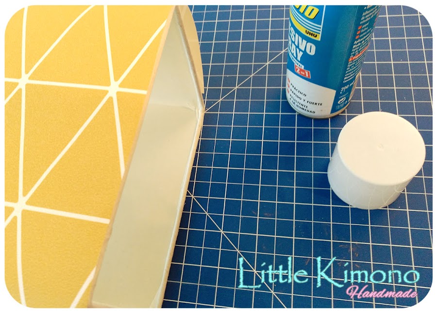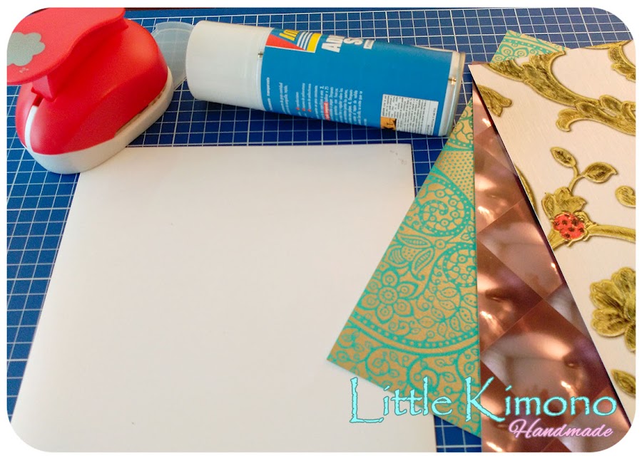 Necesitaremos: retales de papel pintado, tijeras y pegamento, yo he usado en spray pero cualquiera os puede valer ;)