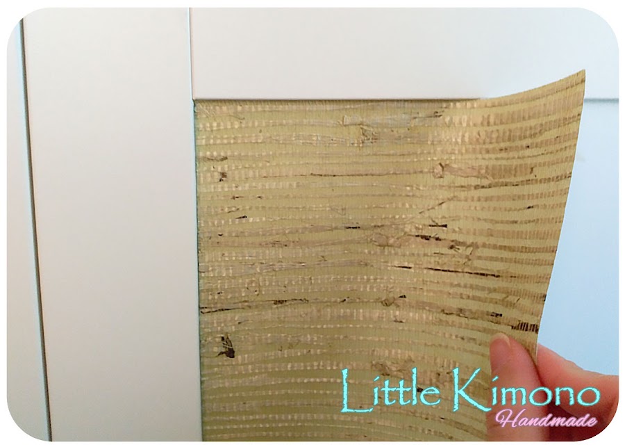 Medimos las partes centrales de las puertas, cortamos el papel con las medidas deseadas, aplicamos el pegamento...