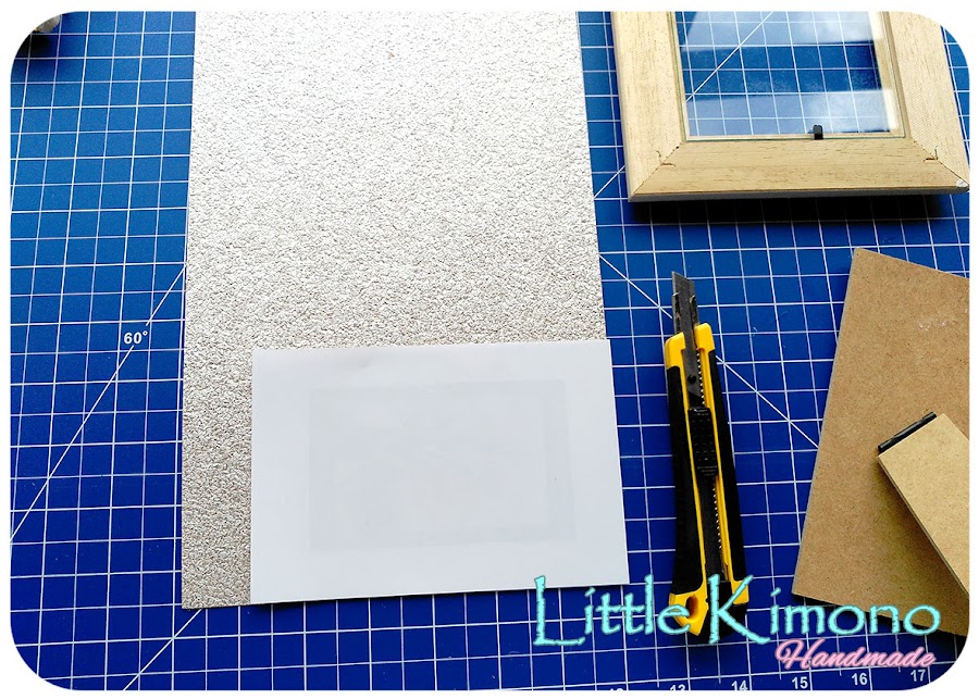 Cortamos el papel del tamaño de "la foto" y metemos dentro del marco.