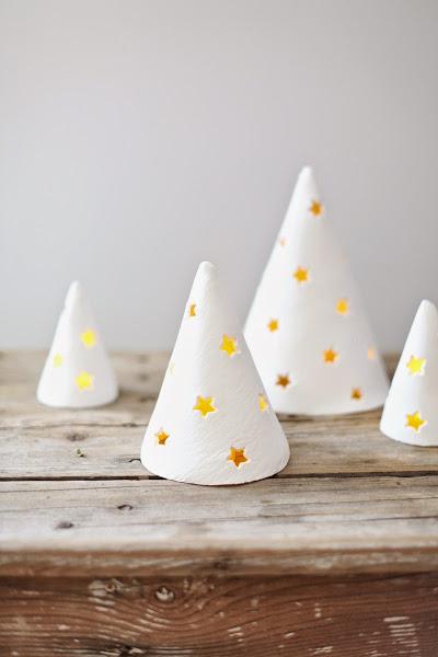 Otra manualidad muy fácil es crear unos conos para poner encima de las velas y poder crear un ambiente acogedor en alguna de nuestras estancias. Diy en A beautifull Mess.