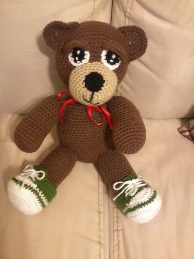 Y vamos con otro patrón, esta vez del blog Novedades Jenpoali, un patrón tipo teddy bear, con unos ojitos que encandilas y esas zapatillas, listo para salir a hacer running en cualquier momento, que ahora está muy de moda. (aunque yo sigo creyendo que correr es de cobardes, jeje)