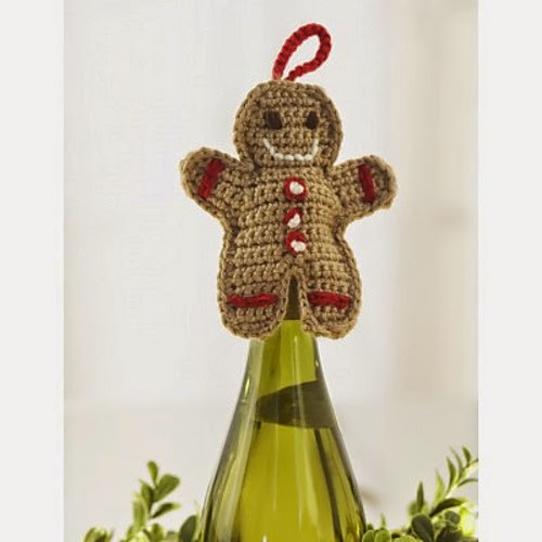 Tejiendo Perú tiene un patrón monísimo para las galletas de jengibre con instrucciones escritas y vídeo-tutorial incluído, así que yo os traigo uno diferente que tal vez sea menos conocido. La creadora de este otro patrón usa las galletas como decoración para el tapón de champagne, y tan rica! A mí me parecen una monada. Si tenéis una cena con invitados y os gustan este tipo de decoraciones, este patrón es perfecto. Si no podéis usarlo como un decorativo normal y corriente y colgarlo por ahí de la pared, del pomo de una puerta o incluso del árbol como un adorno más.