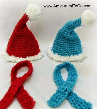 Otra propuesta muy fácil y rápida de hacer: un gorrito de Papá Noel y su bufanda a juego. Ideal para decorar cualquier amigurumi, peluche, muñeco y darle su toque navideño.