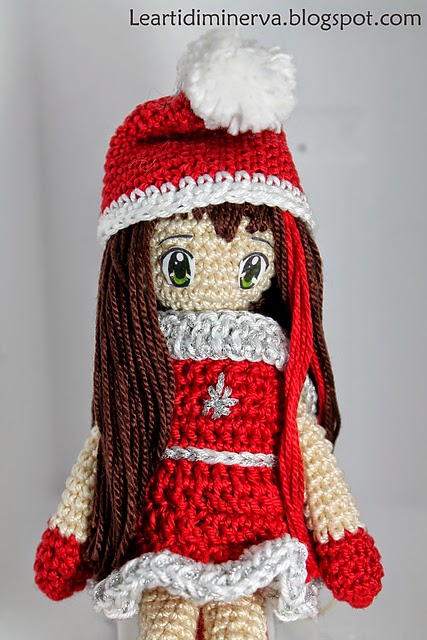 También conocida como la hija de Santa Claus [es imposible que pareciendo tan joven pueda ser la mujer de un señor barbudo y con tanta cana]. Este amigurumi es mi preferido con diferencia de todos los patrones navideños que he podido encontrar nunca. El vestido está hecho a parte, así que se le puede poner y quitar. Los ojos son los que le dan ese toque tan mono y cute. En el patrón también tienes el enlace a un tutorial para aprender a hacerlos con esa técnica, aunque yo todavía no me atrevo.