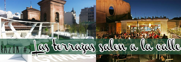 Abre las sombrillas. Las terrazas salen a la calle y si hay algo que me encanta y que empiezo a sentir en la primavera son las terrazas. Tengo recuerdos ¡¡geniales!! con mis amigos en terrazas de Lavapies, en mi barrio o por Sol. Y si... yo también soy de esas que canta lo de "dame una sonrisa, de complicidad...".