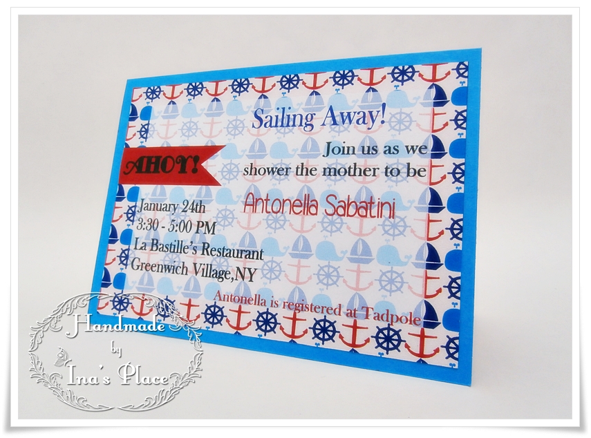 Les comparto una invitación de Baby Shower tema Naútico. Fue un pedido relámpago pero de resultado satisfactorio para la clienta.
