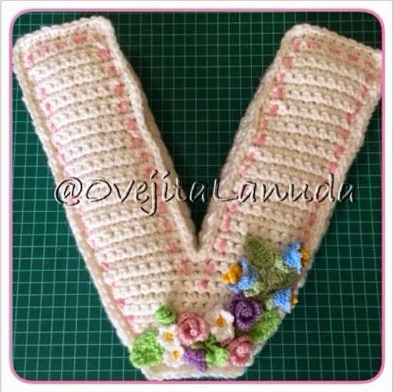 Una de las cosas curiosas de publicar un par de libros es que hay personas que se ponen en contacto contigo. Al ser patrones de ganchillo algunas veces incluyen fotos de mis diseños tejidos y personalizados por los remitentes. En esta ocasión ha sido María Verónica una venezolana residente en México, me ha escrito un mensaje muy amable y me ha enseñado su letra V. Ella la ha personalizado con unas flores tejidas. Una bonita variación sobre las letras bigunki.
