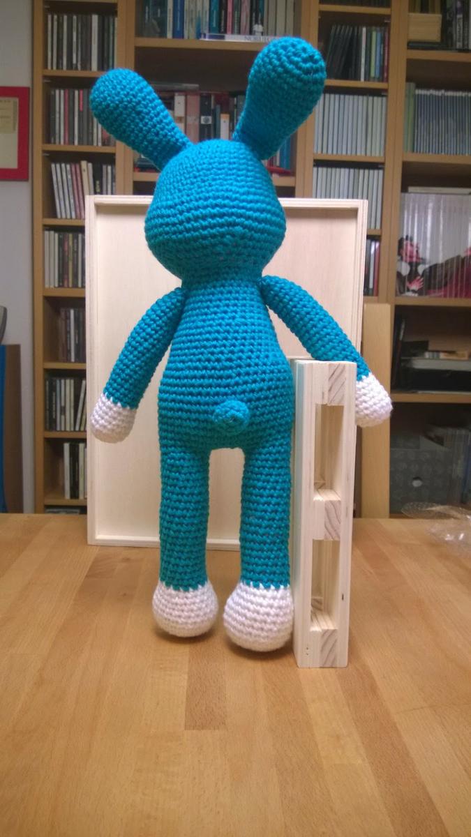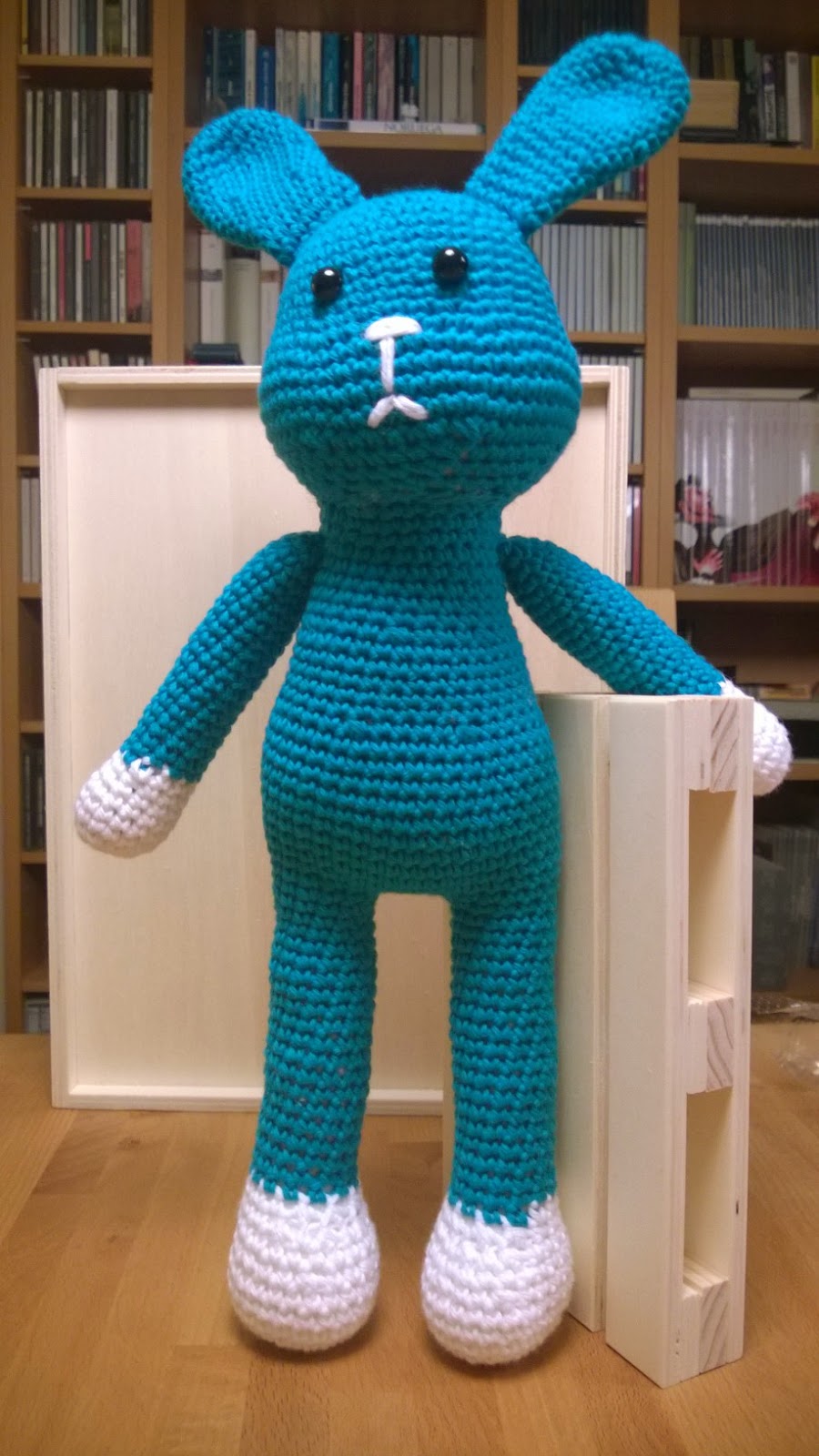 Así que distinto empecé mi diseño, en este caso lo pensé por lo pies (no con los pies), una vez hecho el cuerpo que es una única pieza con las piernas, me ha costado un poco dar con las proporciones de la cabeza, pero por fin ayer estuve inspirada y termine de tejerlo.