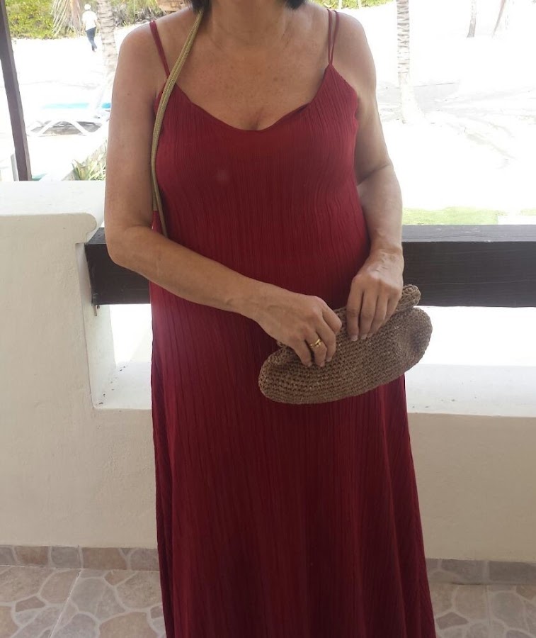 Mi amiga Matxalen tenía una boda en México, en una playa paradisiaca, y me pidió un bolso para llevar a juego con sus alpargatas. La foto me la envió ella.