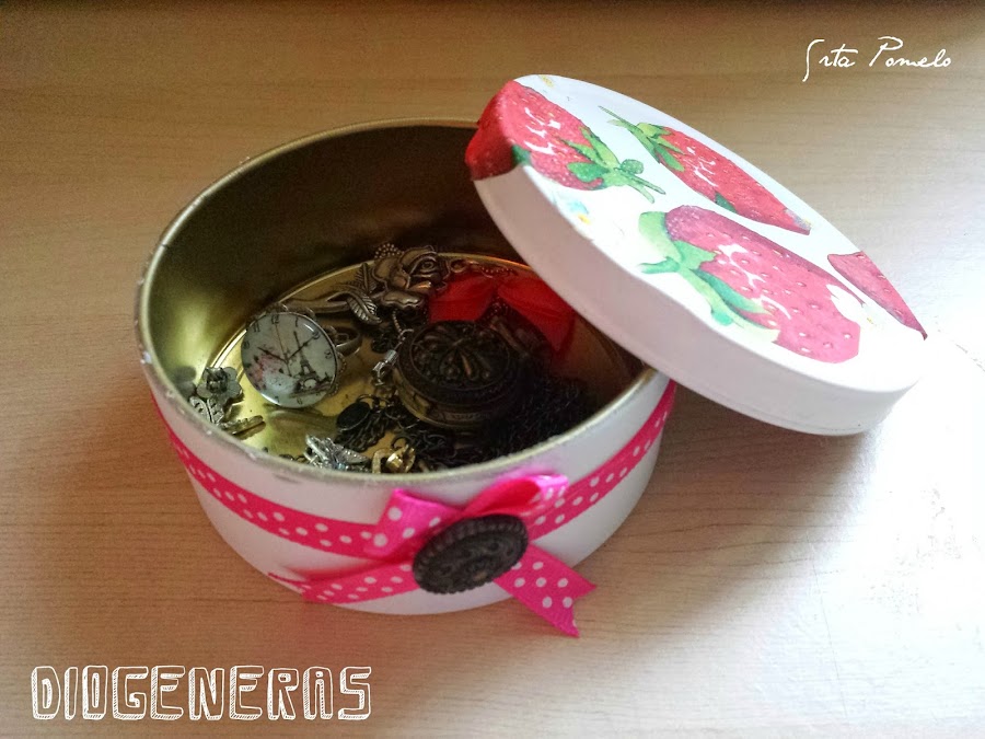 Para este mes, me he decidido a hacer un joyerito con una lata de caramelos que llevaba en casa dando vueltas un montón de tiempo, quizás esperando a que yo, con mi postureo diogenero, me decidiera qué hacer con ella. Pues hala, surgió la idea, como siempre, cuando menos la esperas.